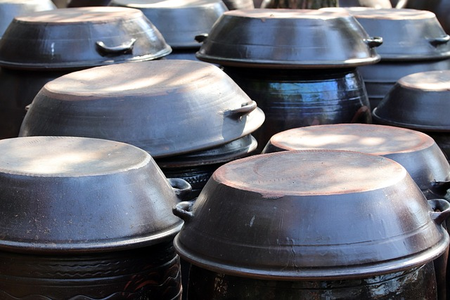 韓国はキムチ専用冷蔵庫があってこの時期に作ったキムチでも一年は食べられるそうです。技術の発展はすごいですね。昔は写真のように「ハンアリ」と言って石釜みたいな容器に保存していたそうです。